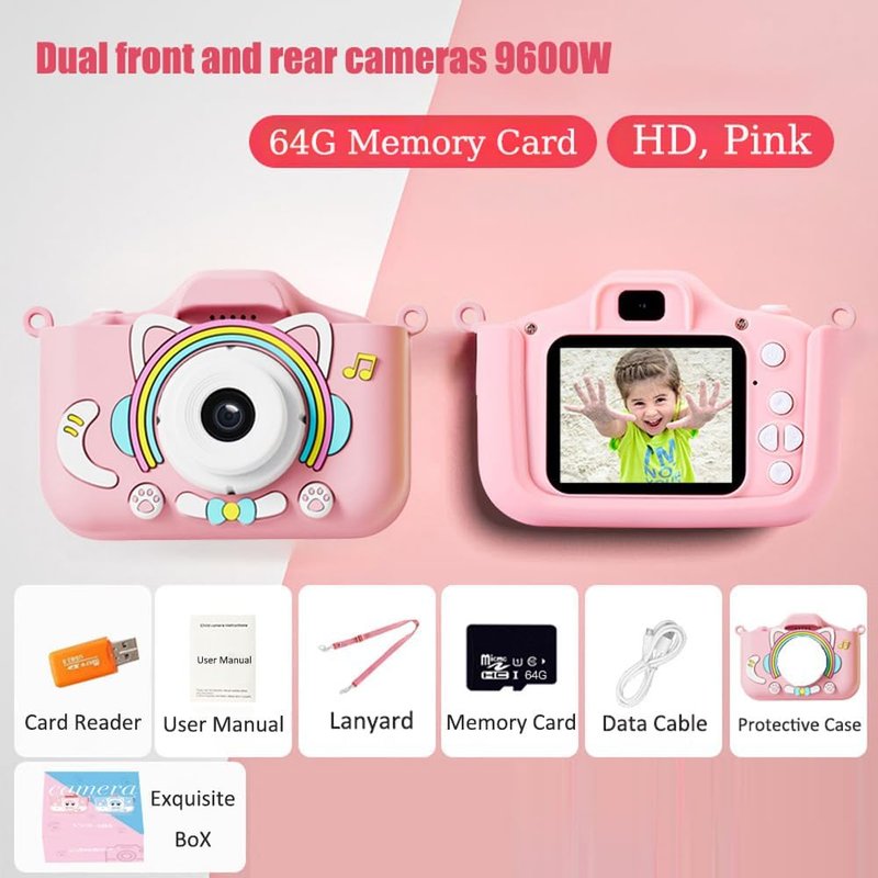 Kids Camera Toys: 9600W Pixel HD, Digital Video Camcorder Camera Toddler Girls Boys Aged 3-8 Children's Christmas Birthday Gift with 64G SD Card Included