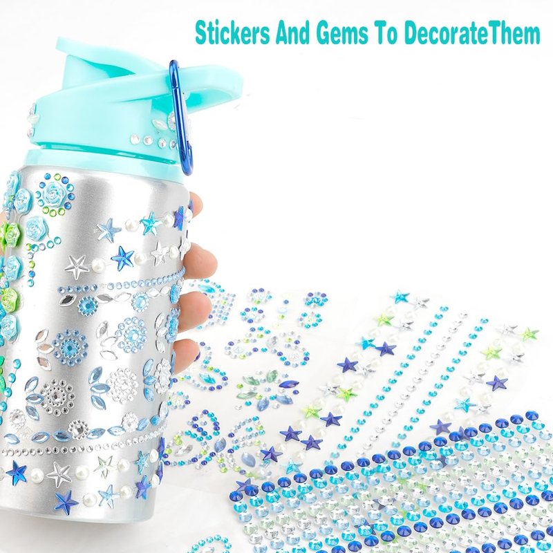 - Package includes: It comes with 7 sheets of our sparkly rhinestone glitter gemstone stickers, A carabiner to hang the bottle and a aluminum decorate your own water bottle, Gem diamond sticker is made of quality resin material, non-toxic, odorless and will never fade. Our aluminum, BPA free, non-toxic, odor free 500mL water bottle, It’s also lightweight so easy for a child to carry around