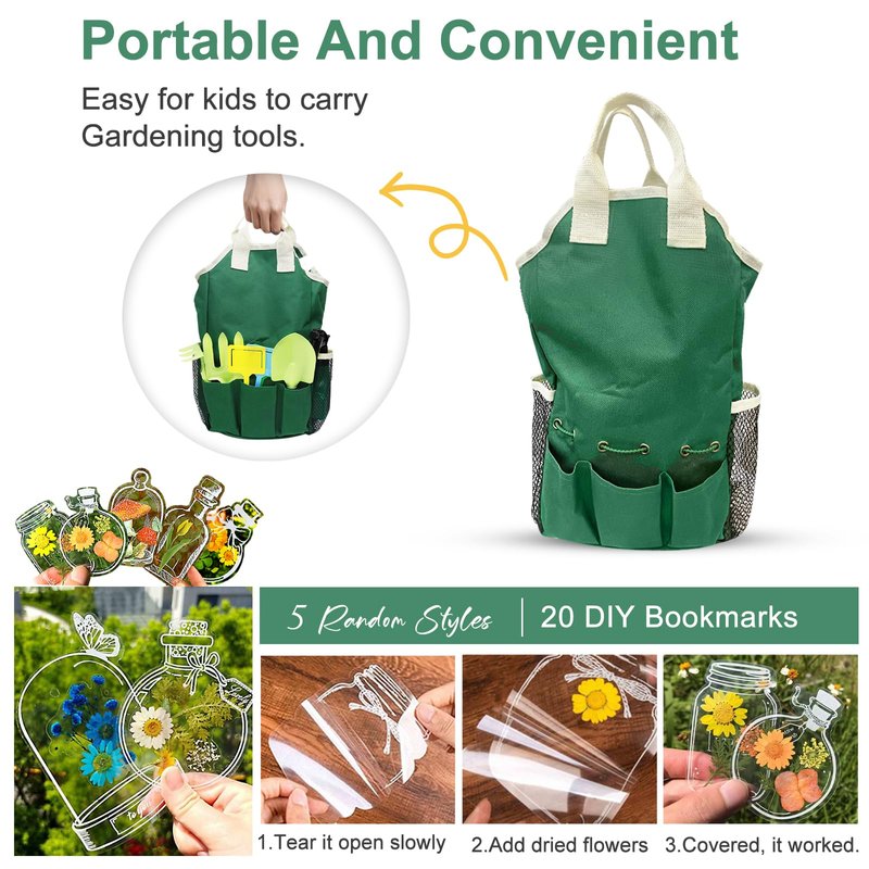 kids gardening set,toddler gardening set,Garden Toys w/Metal Rake, Shovel, Trowel, Watering Can, Gloves, Tote Bag, Plant pots, DIY Bookmark Kits, Spring Summer Toy Outdoor Gift for Toddler Boy Girl