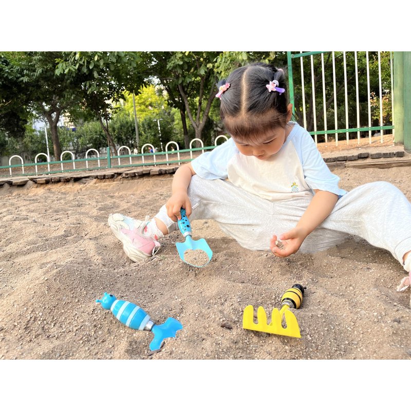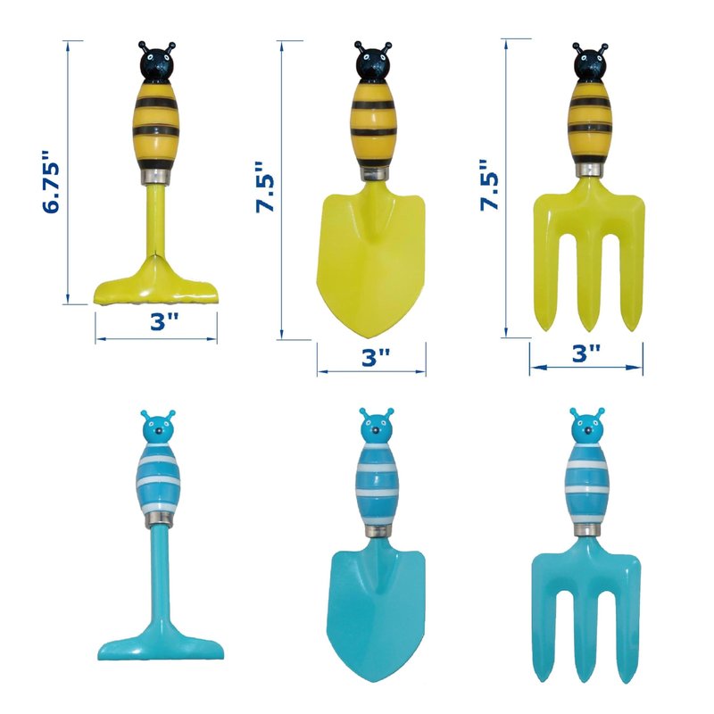 - Each toddler gardening tools set includes 3 pieces: a trowel, rake and shovel. Pack of 2 sets with different colors.