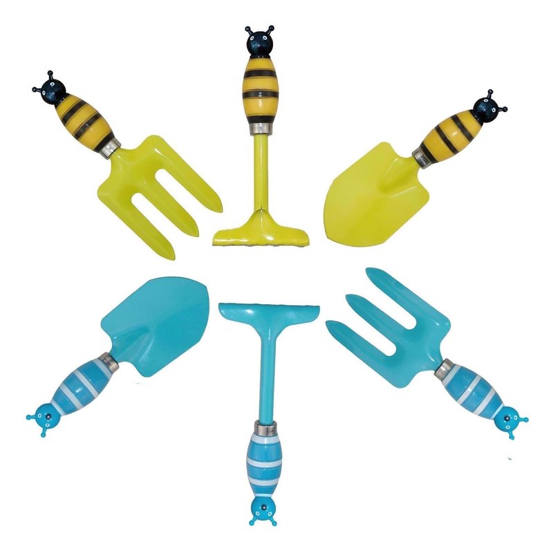 - The bright fun colors and decorations make these a favorite with kids. These outdoor kids yard tools are super cute and addorable.