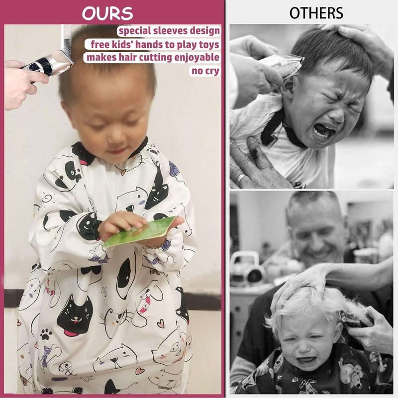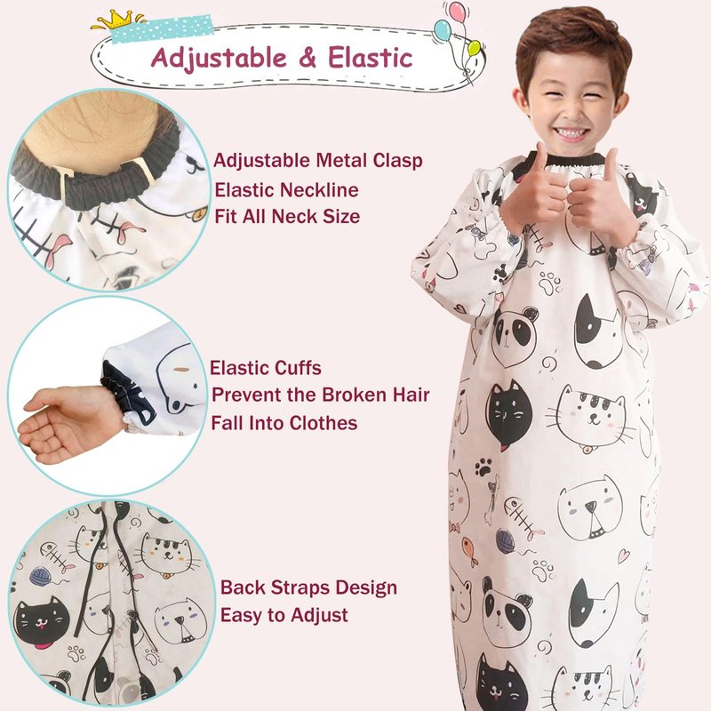 - HANDS-FREE DESIGN: With the unqique sleeves design, kids can keep arms free to read books, use their mobiles or tablets during the boring grooming sessions, which makes the process even more enjoyable.