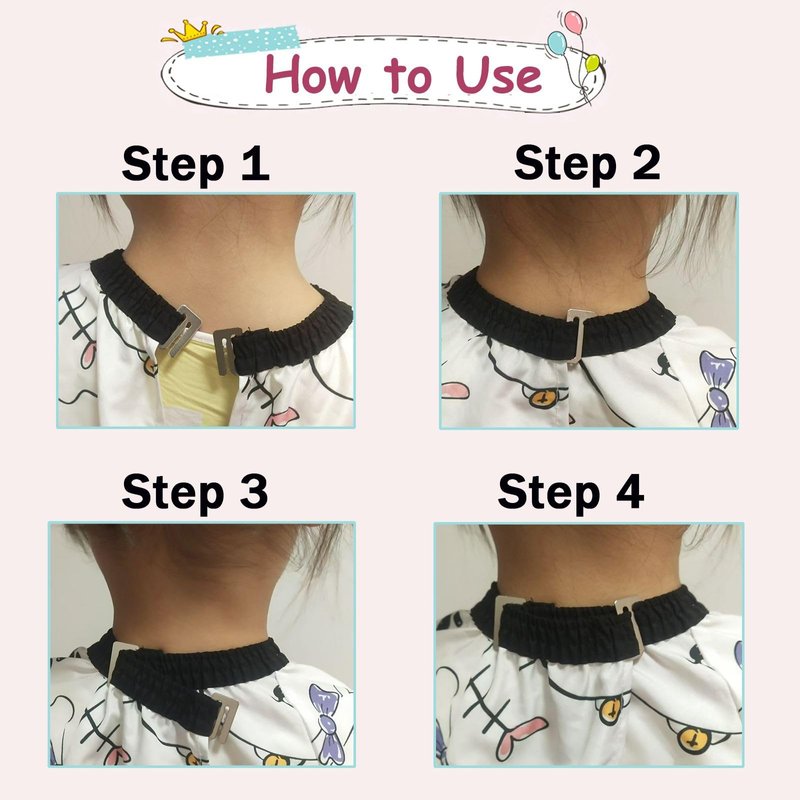 - ADJUSTABLE NECKLINE: The kids barber cape with a metal clip design, better fit for different sized necks, better prevent hair from falling down to the neck and cloth, also easy to put on & take off.