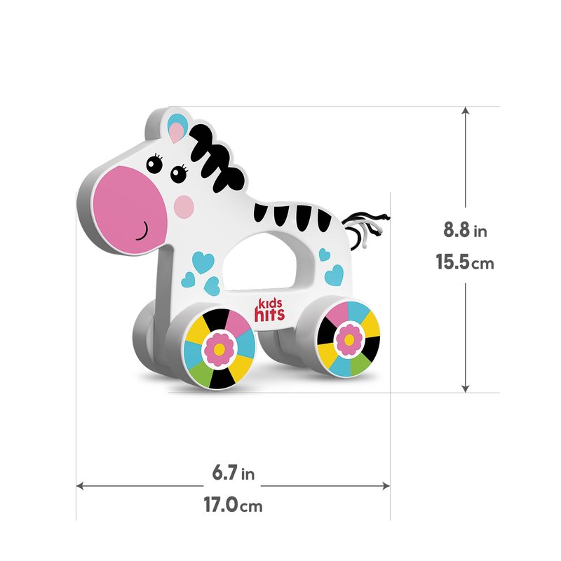 Kids Hits: Colorful Wooden Push & Pull Toy Pull-Along Zebra - Fun Companion for Toddler Exploration, Ages 1 and Up!