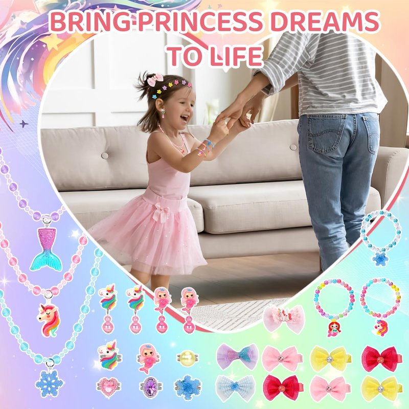 - BRING PRINCESS DREAMS TO LIFE: Making the princess dream of your little girl come true, by choosing different toddler jewelry for girls 3-5 and kids dress up accessories, girls can learn about color matching, fashion trends and personal style