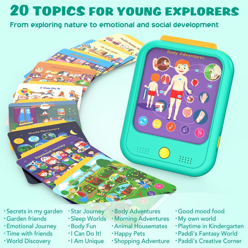 - The Perfect Gift and Preschool Learning Companion: PADDI is not just an educational tool; it’s the ideal gift for children.Its engaging design and diverse themed activities make it perfect for birthdays and special occasions.Additionally,educational toy serves as an excellent companion in preschool classrooms,helping educators introduce fun,interactive lessons that nurture essential skills such as creativity and emotional intelligence in young learners.More than a toy, it's a learning journey.