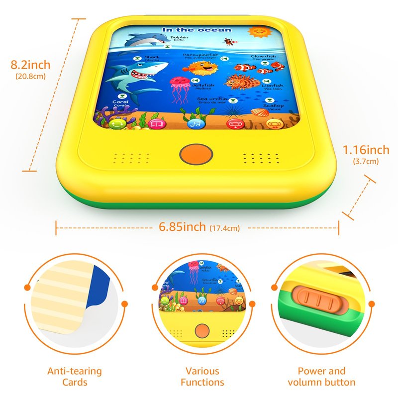 - 【5 Learning Modes】Word Learning-helping the little one develop foundational skills such as language, vocabulary, listening, and pronunciation; Language Switch-enhancing children’s bilingual ability and language communication skills; Amazing Sounds-Explore various interesting sounds and fun facts around the world; Basic and Advanced Quizzes-Interactive games to increase children's engagement and enjoyment in learning.