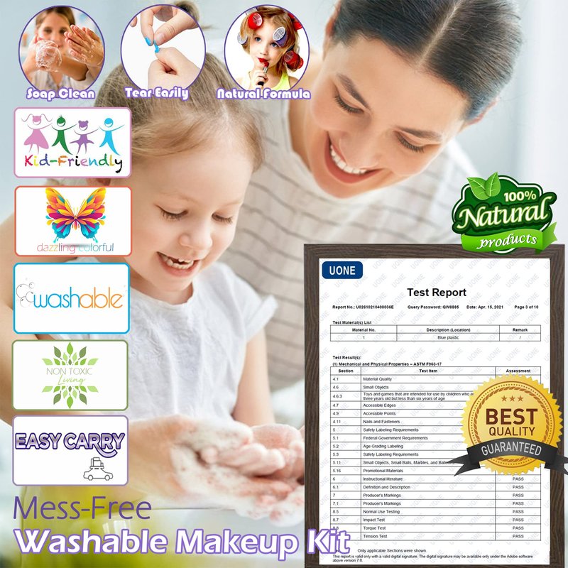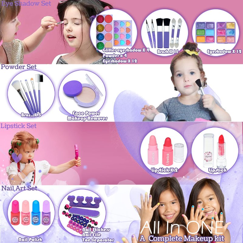 - 【Washable Makeup X 100% Child Safe】:Kids makeup kit for little girls set use water-soluble formula, no added preservatives, mild and non-irritating, no burden on the skin.Kids Makeup Kit Toys for Girls The smooth exterior design makes it not easy to be damaged and protect children's soft hands, Easy to Wash, Non-Toxic. Meet the standards of international children’s toys(CPSIA, CPC, ASTM certificates)birthday gifts, a Christmas gift, Easter toys,toys for 5+ year old girls