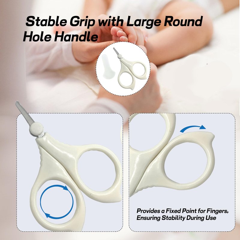 **Safety-First Design:**Make nail cutting stress-free with our kids' nail scissors. The round-tip design ensures safety, preventing accidental cuts and allowing parents to confidently care for their child's nails.**Stable Grip for Ease:**Experience control and stability with the large round hole handle. Nail care becomes easier for both parents and children, as the design enhances grip and maneuverability during use.**Premium Comfort and Durability:**Crafted from high-quality ABS resin, the handle and cap of our nail scissors provide a comfortable and hygienic experience. The rust-resistant stainless steel blades not only ensure durability but also maintain their sharpness over time.**Protective Cover for Longevity:**Included with the scissors is a protective cover. This serves a dual purposeākeeping the blades safe when not in use for extended longevity and ensuring a hygienic storage solution for your child's grooming tools.**Tailored for Little Kids:**Recommended for children aged 3 months and up, these nail scissors are tailored for the delicate care of tiny nails. The gentle yet effective design makes it easy for parents to maintain their children's nail health. Choose our Kids' Nail Scissors for a grooming tool that prioritizes your child's well-being without compromising on comfort or durability.