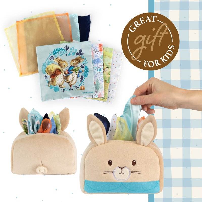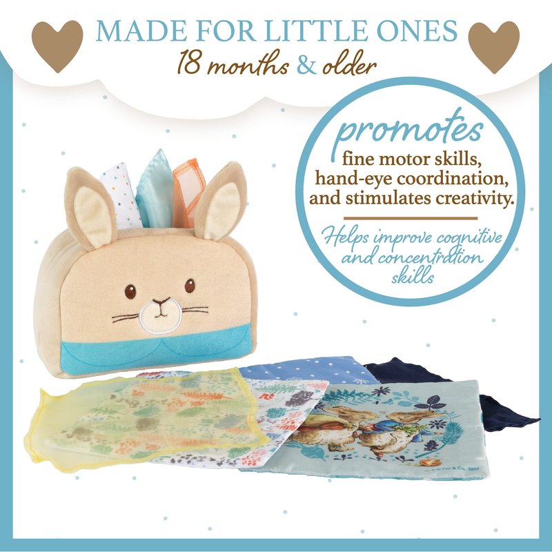 Kids Preferred Peter Rabbit Tissue Box Montessori Sensory Toy 8 Double Sided Tissues For Infants, Babies, and Kids Based on the Beatrix Potter Books