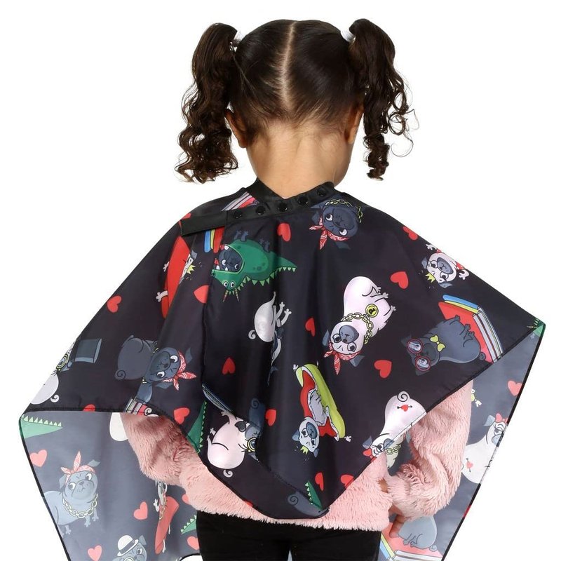 Kids Size Pug Barber Cape For Hair Cutting at Home or Professional Salon, Barber Shop Hair Cutting Cape Adjustable Neck with Plastic Snaps, Little Girl