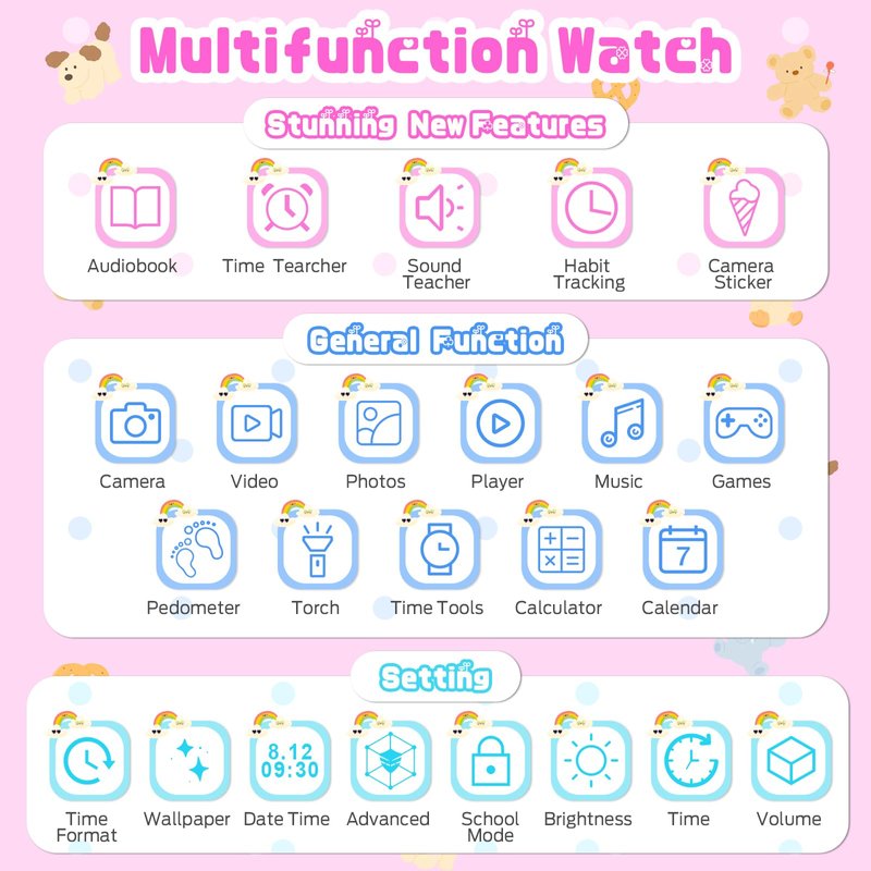 Unleash your child's potential with our Exclusive Smartwatch, designed to combine fun, learning, and practicality in one stylish accessory. This watch goes beyond the basic functions of typical children's smartwatches, offering a suite of features that rival even adult smartwatches. From taking photos and listening to music to playing educational games and setting alarms, your child will have endless opportunities to learn and play. Our smartwatch includes unique features like a Storybook, Time Teacher, and Habit Alarm Clock—perfect tools for teaching time management and cultivating good habits. Whether it’s setting a reminder for breakfast, walking the dog, or homework, you can easily schedule important activities, helping your child develop a structured daily routine.