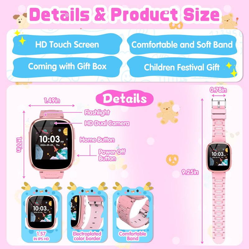 - EXCELLENT EXPERIENCE: Smooth touch interface, comfortable and high-grade strap, rich HD interface, the ultimate experience of children's smartwatch, we packaged in a gift box, it is the best gift for children on Halloween, Easter, Children's Day, Christmas, birthday and other festivals