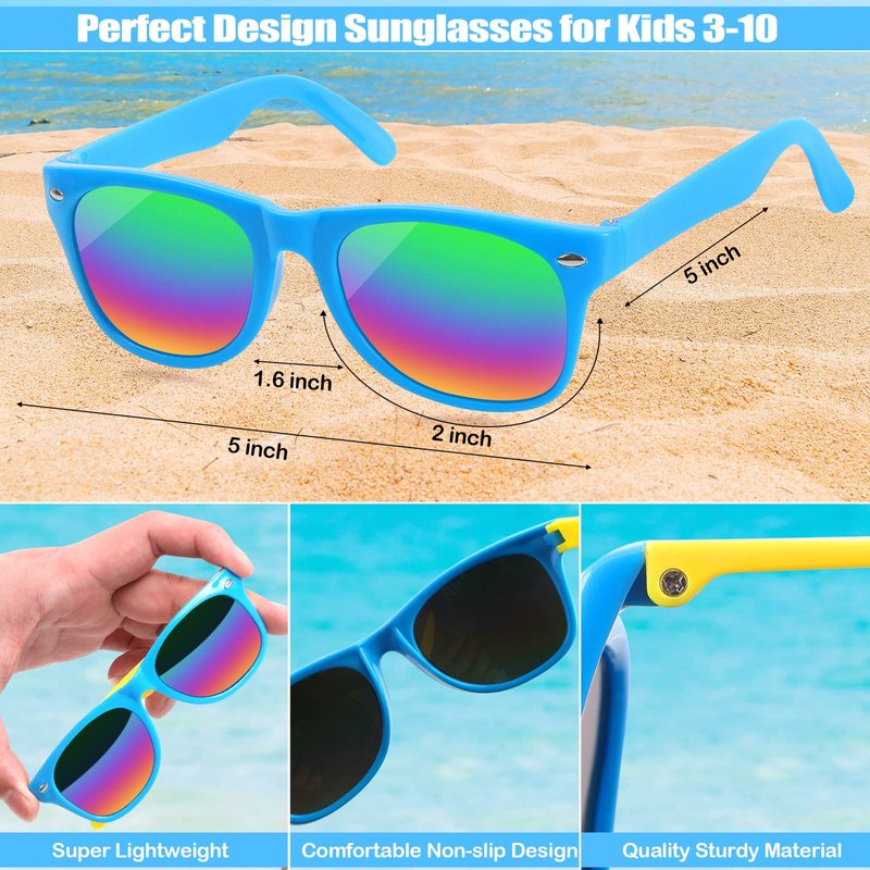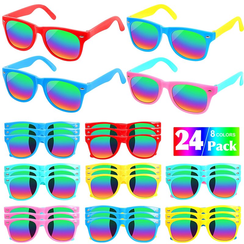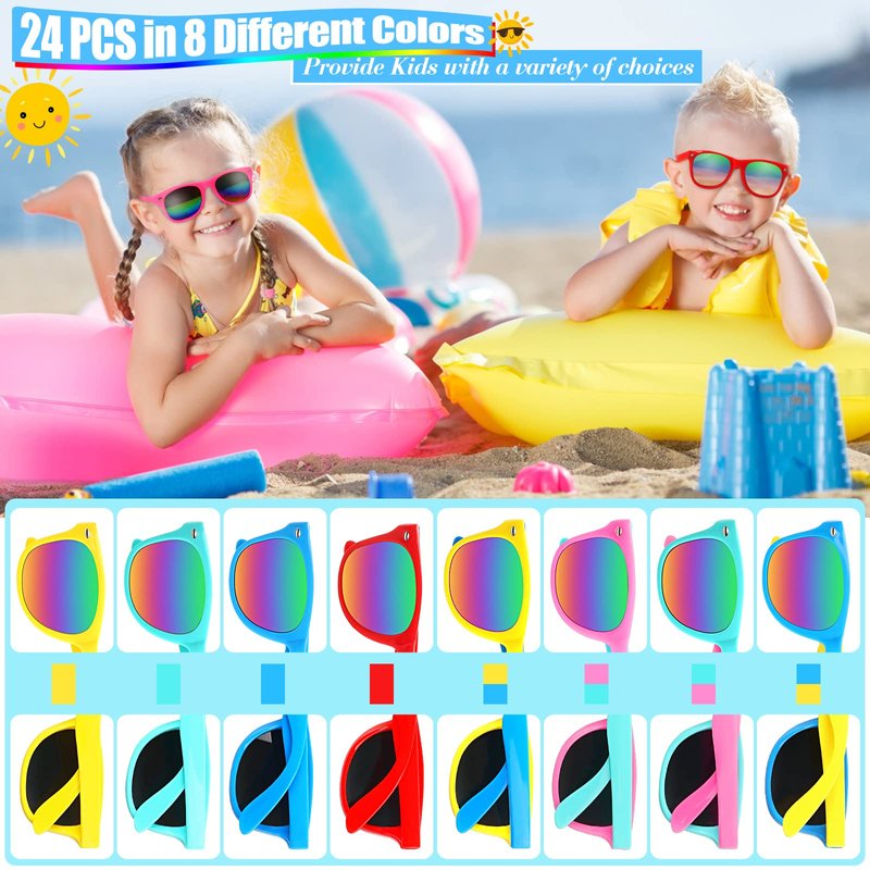 - 🍹 Surprise Your Kids with This Sunglasses Bulk: The 24-pack kids' sunglasses are suitable for any occasion, it’s great gifts for kids’ parties. Ideal party favors for the summer beach play, outdoor events, school association exchanges, birthday party favors and more! 100% Satisfaction providing you with a great shopping experience. Feel free to message us through “contact sellers” if products don't meet your expectations.