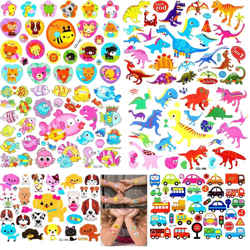 Keep the smile on your kid's faces with fun temporary tattoos for children. Your kids will enjoy wearing these fun designs and characters. With hundreds of designs in each set, these temporary tattoos are great for birthday parties, costumes, Halloween, school events, classroom prizes, gifts and presents.