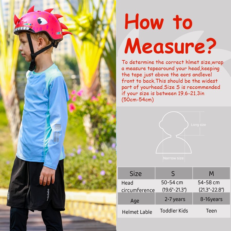 Medium size helmet includes 2 sets of interchangeable pads with different thickness (7mm and 10mm) to fit kids’ head size. The pads are removable for cleaning, keep kids away from odor and dust.