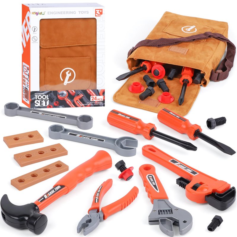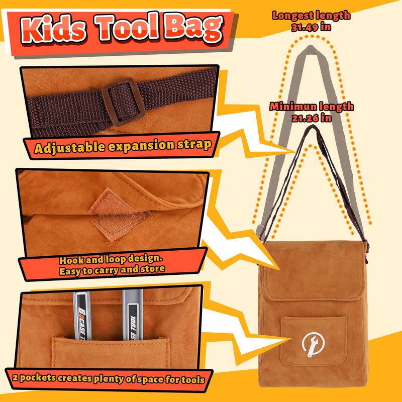 - 【Educational Pretend Play Tool Bag】This tool kit for kids supports learning early engineering play, help toddlers be creative, enhance hands-on ability and hand-eye coordination, and fine motor skills while inspires their logical and space mind. Our tools for kids ages 3-5 will keep your child having fun exploring and learning