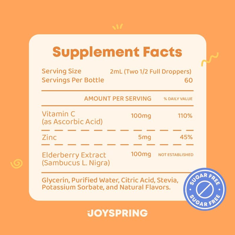 - Kids Immune Booster Made with Kids in Mind - JoySpring's toddler Vit C Elderberry drops can be added to any drink! This liquid immune defense makes it easier to incorporate the benefits of the holistic ingredients in this fast-absorbing immune booster.