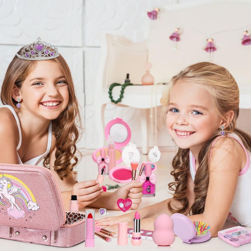 - 【Safe And Washable Girls Makeup Toys】Girls makeup kit for kids are made from child-safe materials, It can be washed off with soap and water.colors is very bright and easy to apply.This kids makeup is dermatologically tested on kids ,it not contain any allergens/irritants.