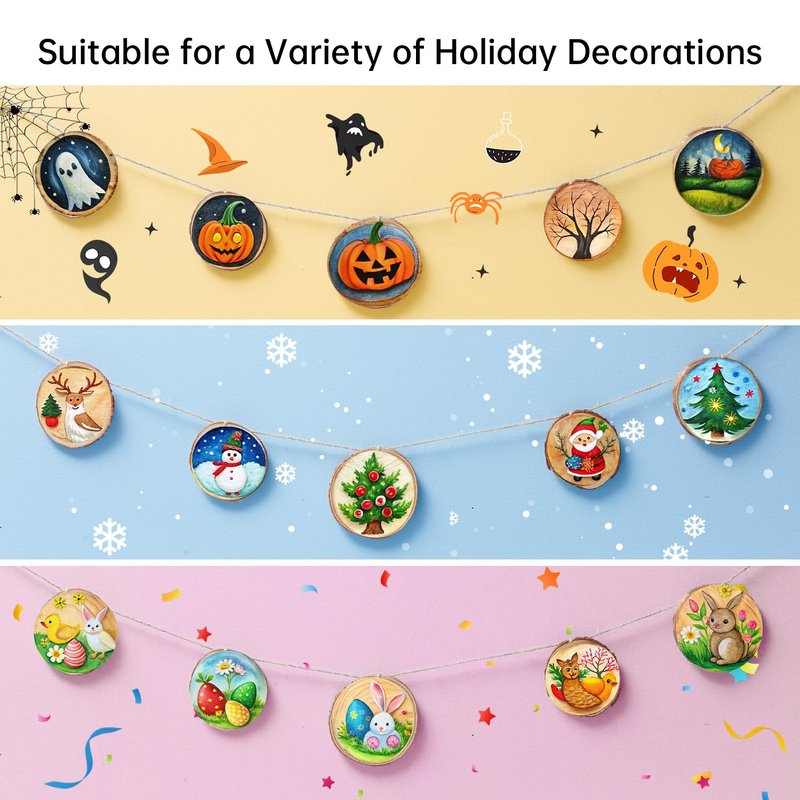 Kids Wood Painting Craft Kit, Glow-in-the-Dark Paint and Diamond Painting on Wood Slices with Stickers & Wiggle Eyes, Ideal Arts and Crafts for Kids Ages 5-12, Gifts for Halloween, Christmas, Birthday