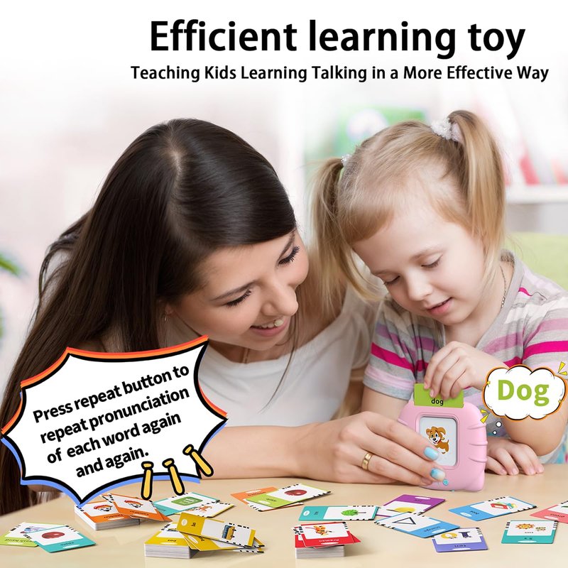 - [ Easy to Use ] Turn on the switch, put the card into the card reader’s slot, and the card reader will pronounce the words. And you can repeatedly read and learn again and again by pressing the repeat button. It can be used independently by toddlers ages 2 and up.
