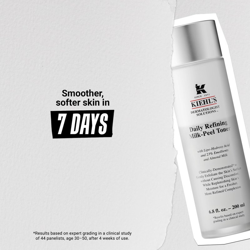 Kiehl's Daily Refining Milk-Peel Toner, Gentle Exfoliating Facial Toner, Refines Skin Texture, Brightens & Softens Skin, Restores Moisture, with Lipo-Hydroxy Acid & Almond Milk - 6.8 fl oz