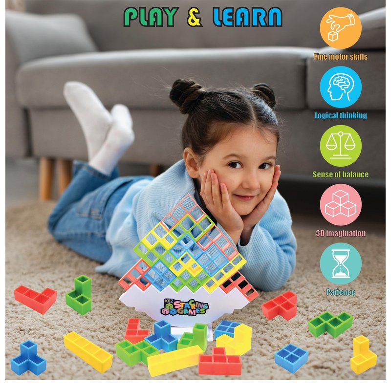 - [Learning while Playing] This toy is not just fun. Kids can practice fine motor skills, strengthen logical thinking, improve sense of balance, explore 3D imagination, and learn to be patient while playing.