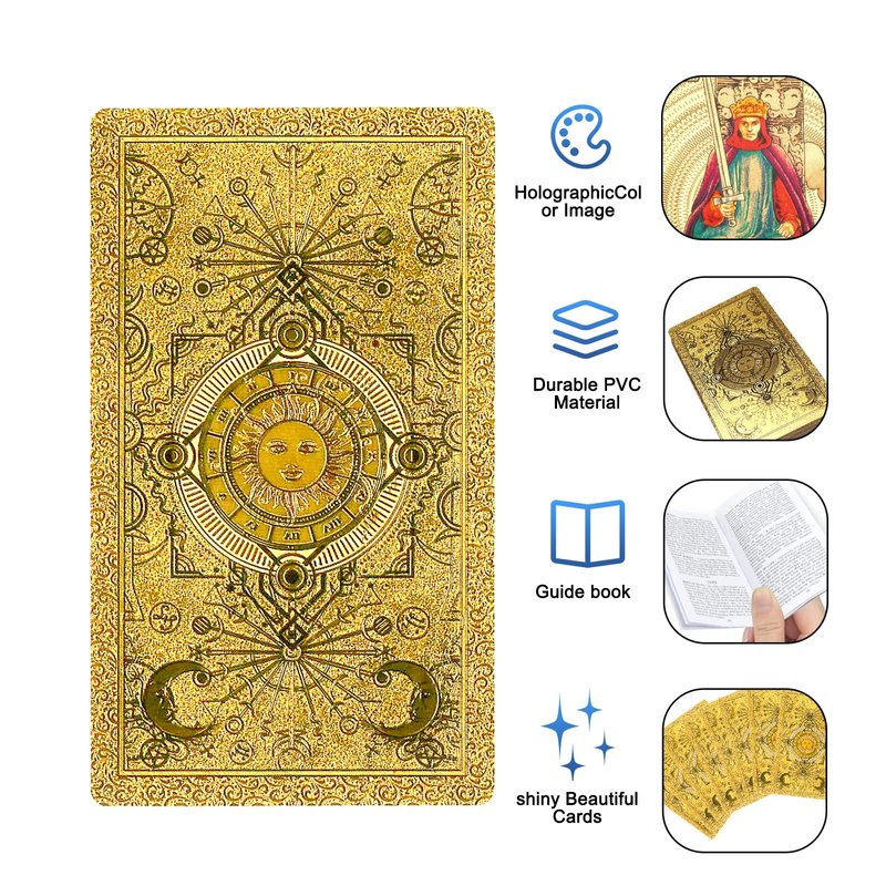 Our tarot cards are perfect for beginners.The tarot deck package comes with a detailed booklet that offers an easy-to-read explanation for players.The tarot color is gold, and each piece looks as good as gold leaf, making this tarot deck look very high-end. Perfect for your collection.So If you are looking for the ultimate gift for game lovers, then you have found our playing tarot deck.The gold design makes everything pop and helps the focus into the card. Bring a different experience to users. Now let's enter the world of tarot cards.