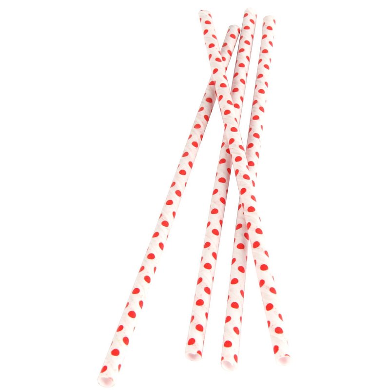 Kikkerland Biodegradable Paper Straws, Red Polka Dots, Box of 144, Red/White