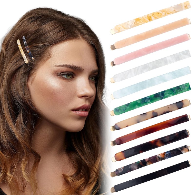 KIKOOD Bobby Hair Clips French long Barrettes Geometric Polished Tortoise Shell Hair Barrettes Clamps Hair Accessories for Women Girls Wedding Bridesmaid Valentines Day Party Birthday, 11pcs, mixed