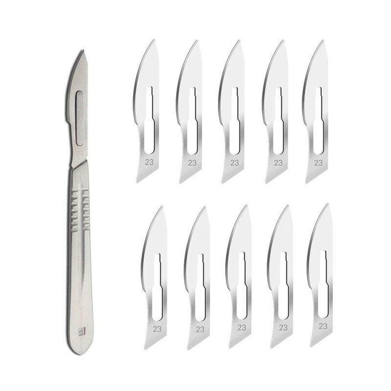 - Included 1 Scalpel Knife Handle #4,10Pcs Sterile Carbon Steel Blades #23