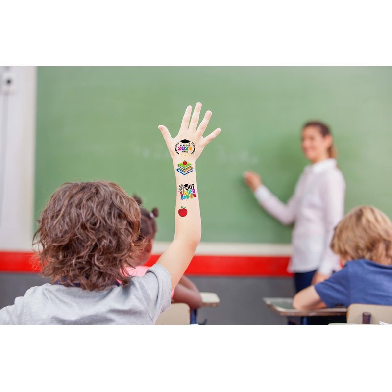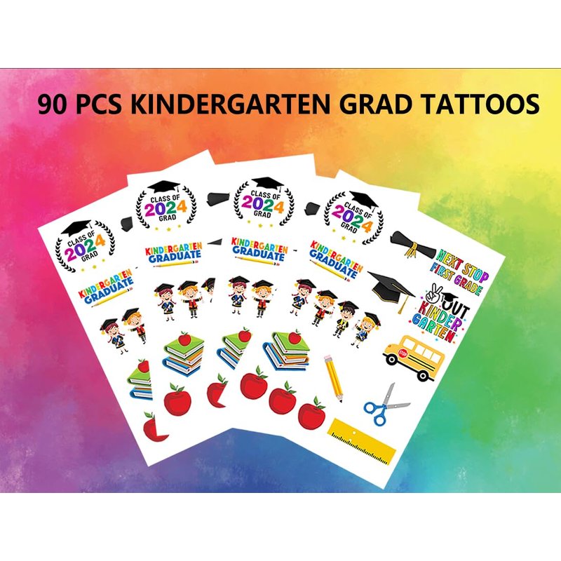 - Included 5 sheets Kindergarten graduation tattoos, each sheet has 18pcs, totally 90pcs for use