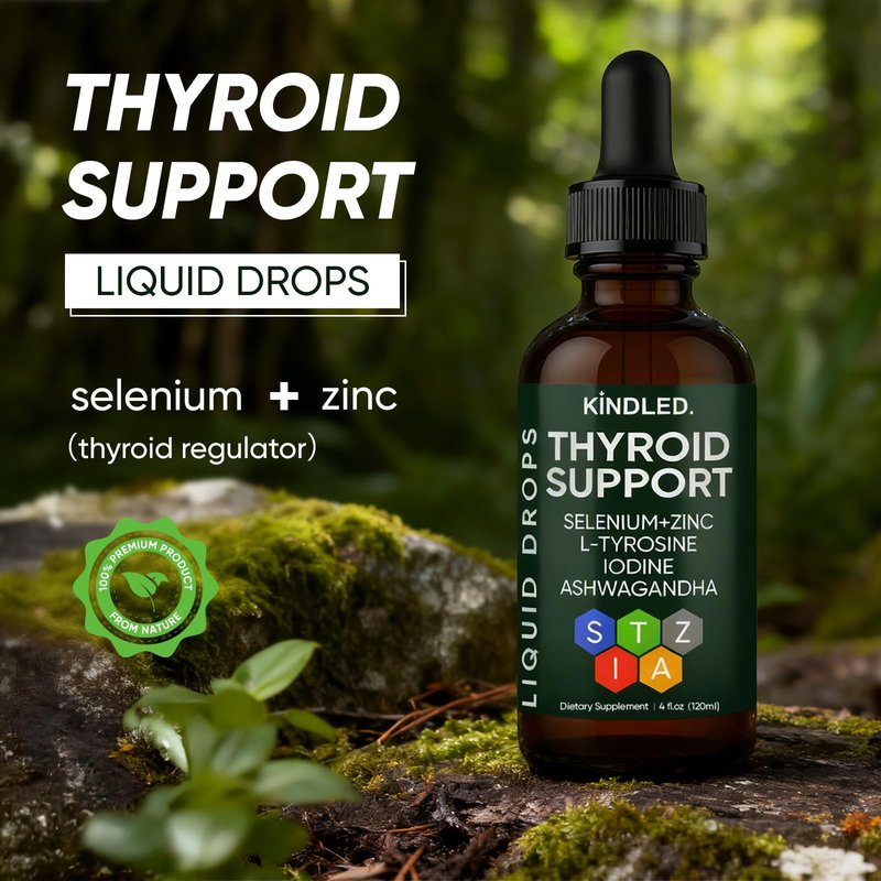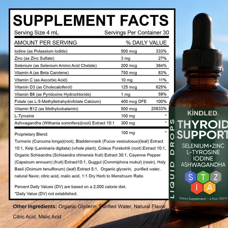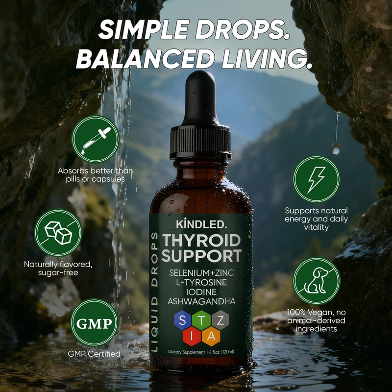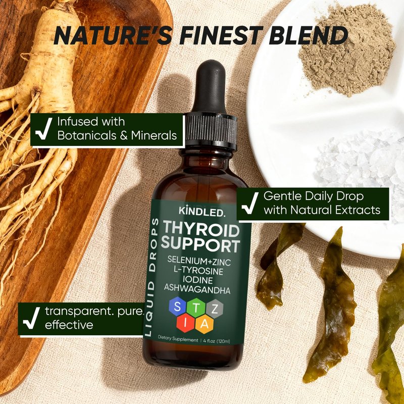 Kindled Thyroid Support Drops | Liquid Drops with Selenium, Zinc & L-Tyrosine, Iodine, Ashwagandha | kindled Thyroid Support, Daily Support – 4 fl.oz (120mL)