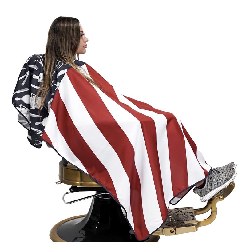 - PROFESSIONAL GRADE HAIRCUT CAPE - The king professional grade hair cutting cape is ultra lightweight salon cape. This vintage american flag barber cape is made of soft fabric, which is hair proof and water repellent, that ensures the cut hair will not stick this barber cape.
