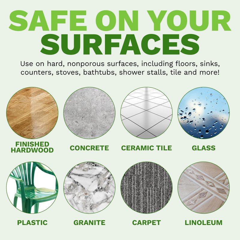 In The Home: Cleans and deodorizes hard, non-porous surfaces such as floors, pet quarters, garbage cans, counter tops, etc.