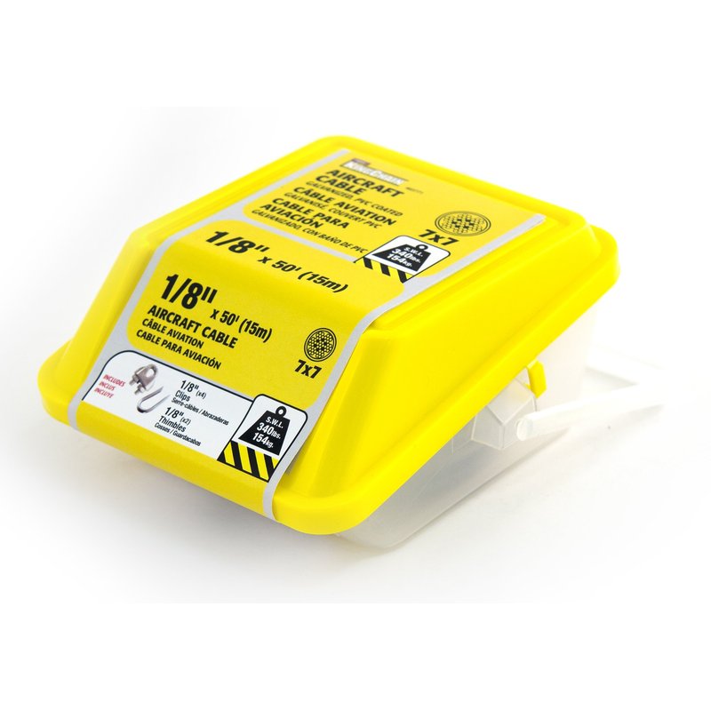 KingChain 463771 1/8" x 3/16" x50' Pvc-Coated Galvanized Aircraft Cable Kit