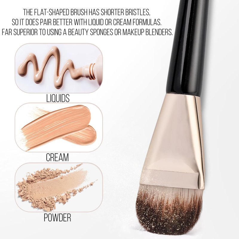 - PREMIUM TONGUE SHAPE CONCEALER Soft bristles makeup brushes for liquid cream foundation powder buffing blending, Use this flat makeup brush as a foundation or contour brush to apply liquid and cream products onto the skin without trapping or absorption of product. It does not soak up excessive amounts of product like other makeup brushes.