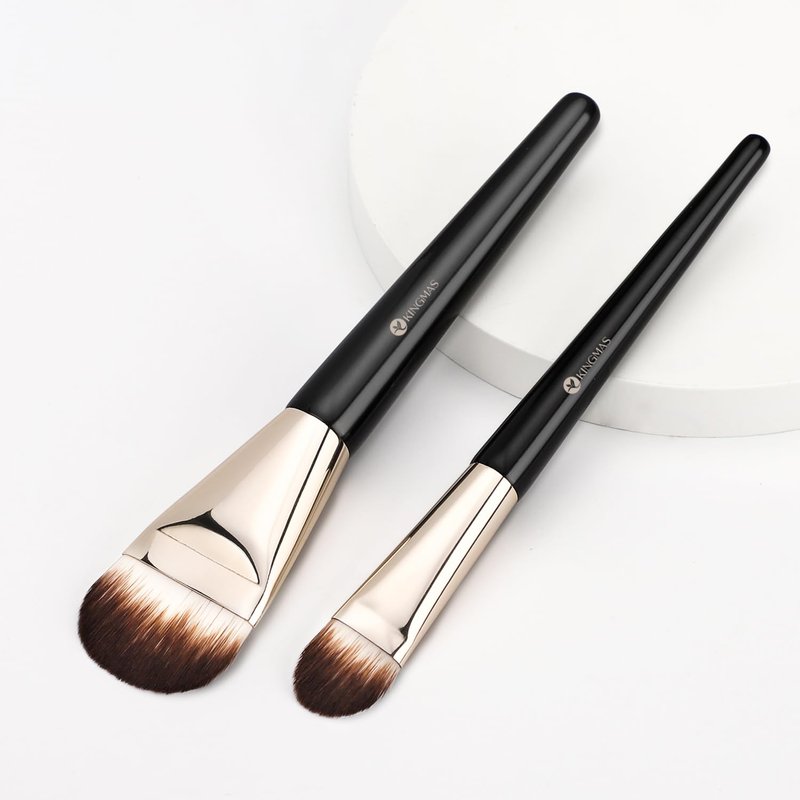 KINGMAS 2Pcs Foundation Makeup Brush, Premium Under Eye Nose Contour Brush, Flat Tongue-Shape Concealer Makeup Brush for Liquid Cream Foundation Powder Buffing Blending