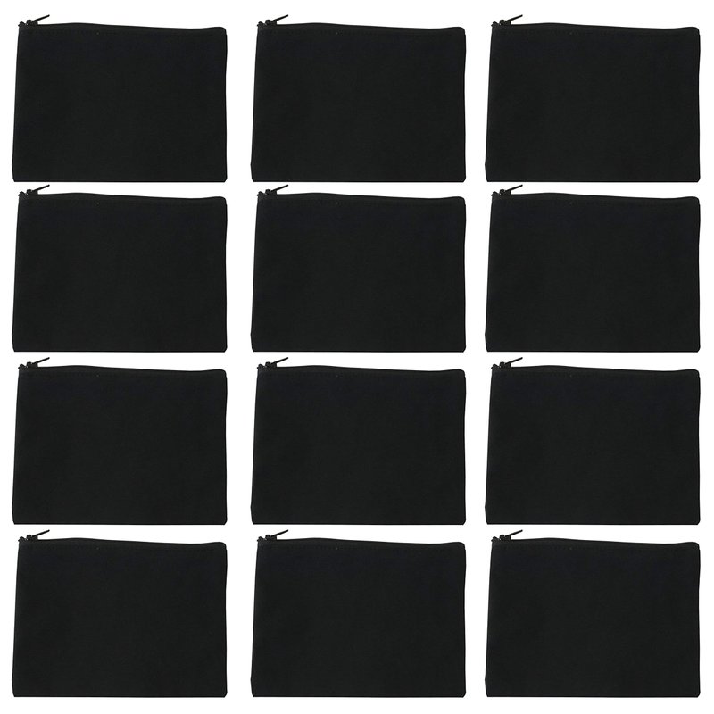 Kings Of NY Blank Black 100% Cotton Canvas Makeup Bag With Zipper 9x6 Cosmetic Pouch Bulk - 12 Pack 1 Dozen