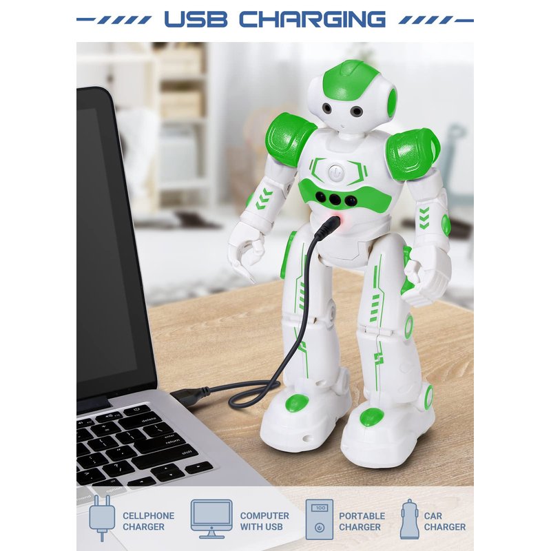 - 🍀Convenient Rechargeable Robot Toy : this RC robot is powered by built-in batteries.Directly connect to USB charging interface like your power bank,plug,computers.Rechargeable way saves your money for batteries and you only recharge the robot about 2 hours, and its playtime is about 60 minutes.
