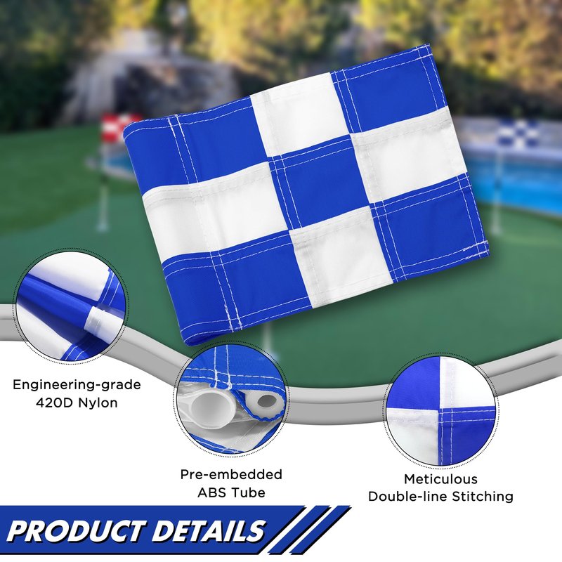 - Superior Craftsmanship: Every check square and the edge is meticulously double-stitched, ensuring the putting green flag stays intact and durable for prolonged usage.