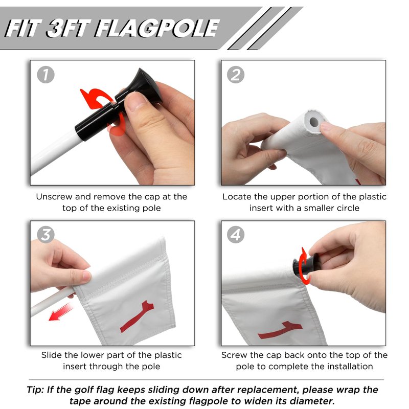 - Professional Grade: Conforms to PGA Junior Flag standards at 6" H x 8" L, precisely tailored for flagpoles around 3 feet.