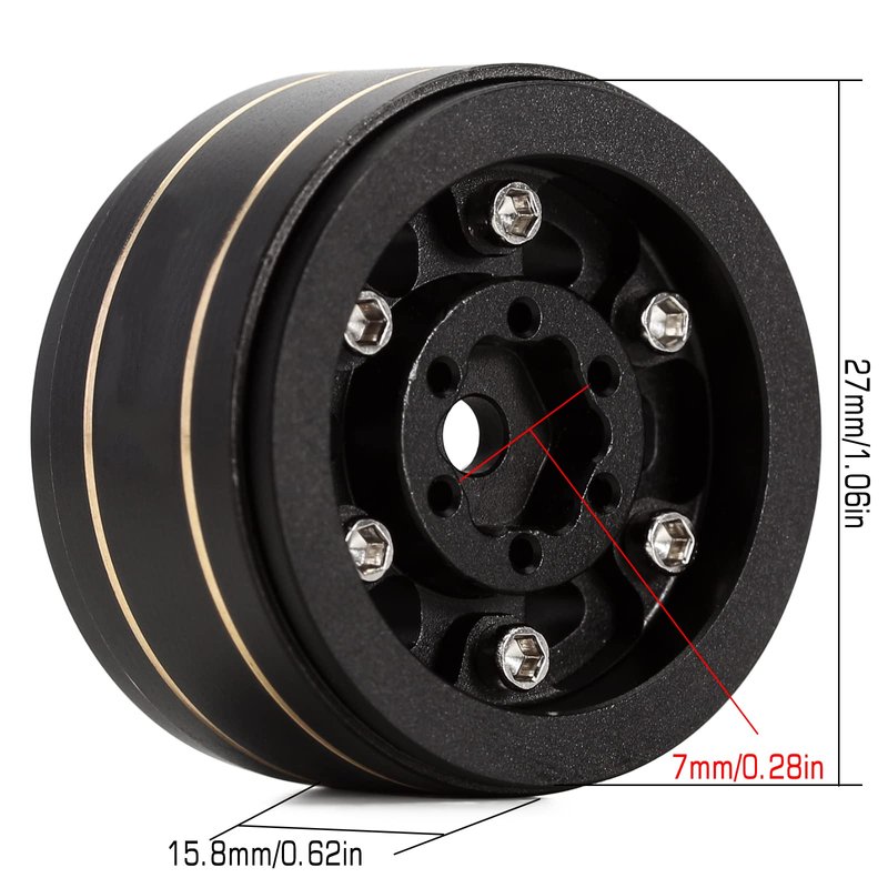 KingVal Replacement 4PCS Brass 1.0" Beadlock Wheel Rims Tyre Rim Offset -3.15mm Wheel Hub 7mm Compatible with Axial SCX24 RC Crawler Car