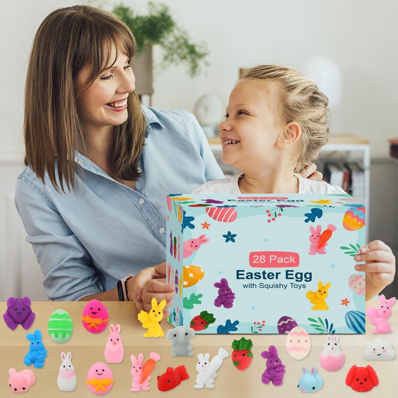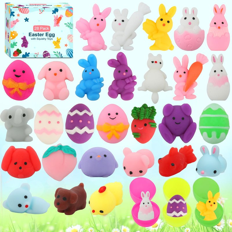 Specification: 1. The 28 pack Easter egg with mochi squishy toys inside are perfect Easter gift for boys girls kids toddlers teens and adults,