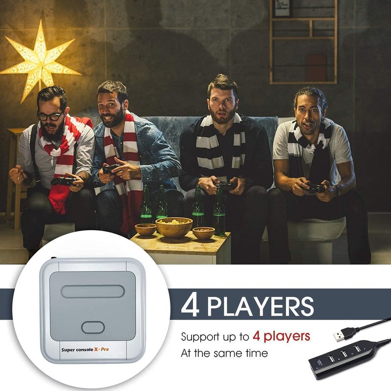 - 🎮HAVE MULTIPLAYER GAME FUN - Super Console X Pro support multiplayer mode of up to 5 players.With the 2.4GHz wireless controllers,you can play the classic retro games from the comfort of your sofa and share your happiness with your family and friends.