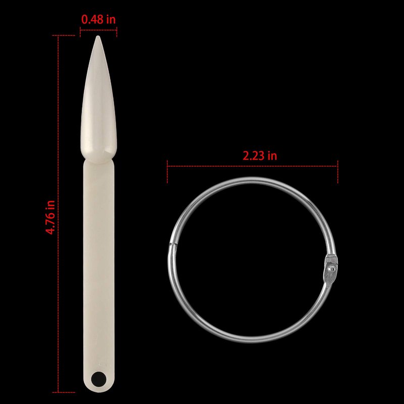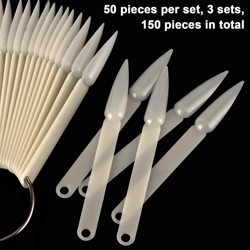KINJOEK 3 Set Total 150 Pointed Tips Natural Nail Swatches Sticks, Nail Art Supplies Stiletto Practice Tips Display Board Sample Sticks with Ring for Nail Art Polish Color Test Display Home DIY