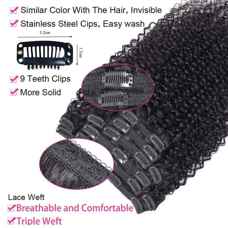 - Curly Hair Clip In Extensions is with Classic triple lace weft clip in design. Each weft is quite thick.You will enjoy flexible French lace ultimate comfort once applied.Triple wefts means more hair than typical single and double weft extensions.They looks less bulky on your scalp.