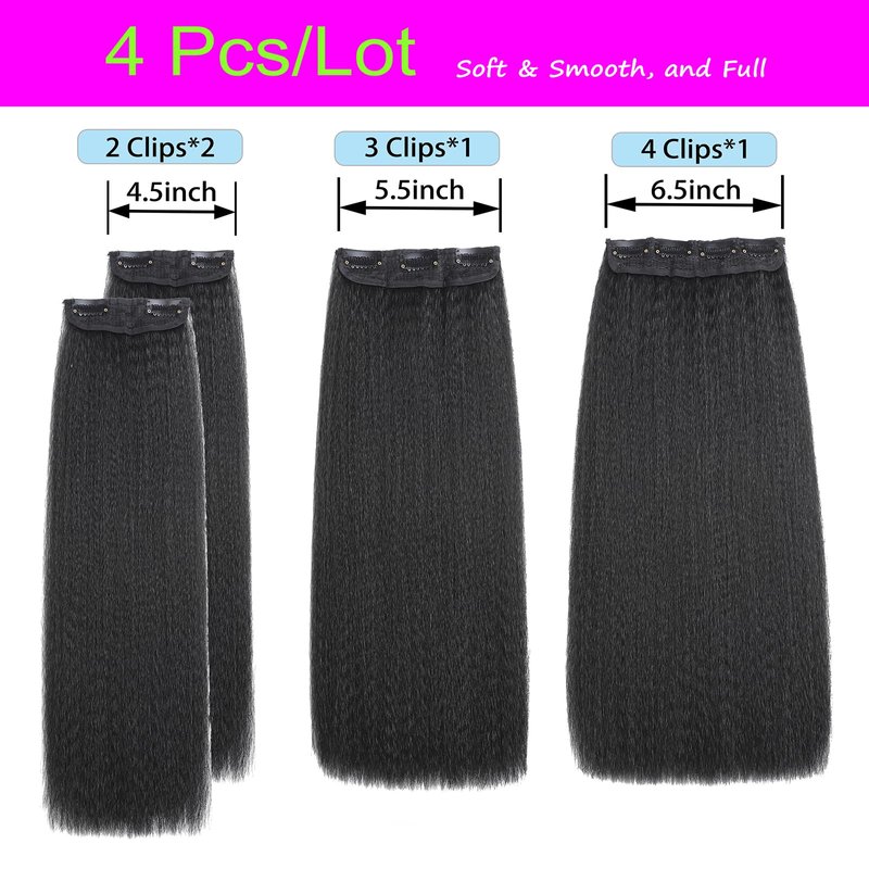 - - YAKI Kinky Straight Hair Texture: Our kinky straight clip ins hair extensions feature a YAKI kinky straight hair texture that mimics the appearance of real human hair, adding volume and length for a stunning transformation. It blends seamlessly with your own hair, giving you a natural and realistic look