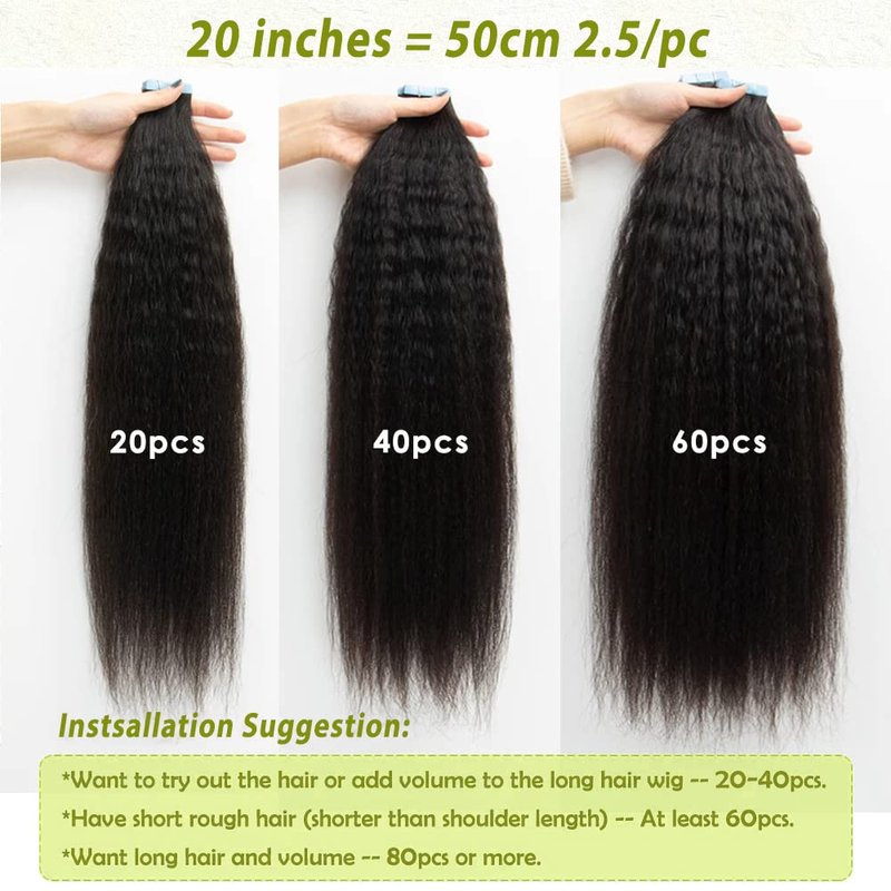 - 【Tape in Hair Extensions Human Hair for Black Women】---Kinky straight tape in extensions, made of 100% 9A Premium same direction cuticle aligned virgin hair. Natural black hair extensions kinkys straight human hair tape ins is more healthy soft, no dry and no split hair ends. Kinky straight hair extensions real human hair tape in extensions for black women, can be washed, straightened, conditioned and restyled as your own hair .