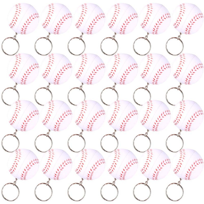 KINMAD 24 Pack Baseball Keychains Baseball Sport Stress Ball Keychains for Kids Party Favors Gifts School Carnival Prizes